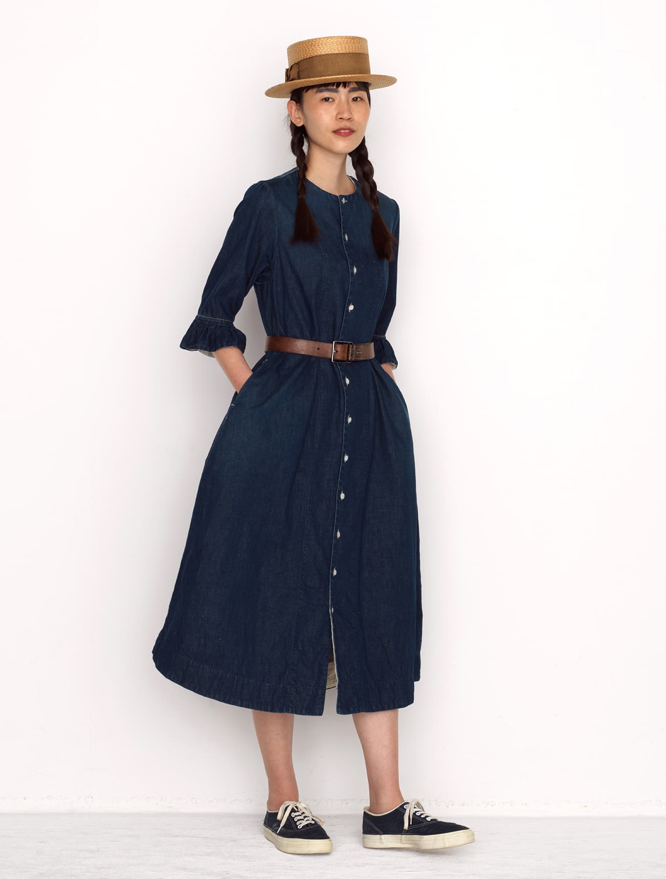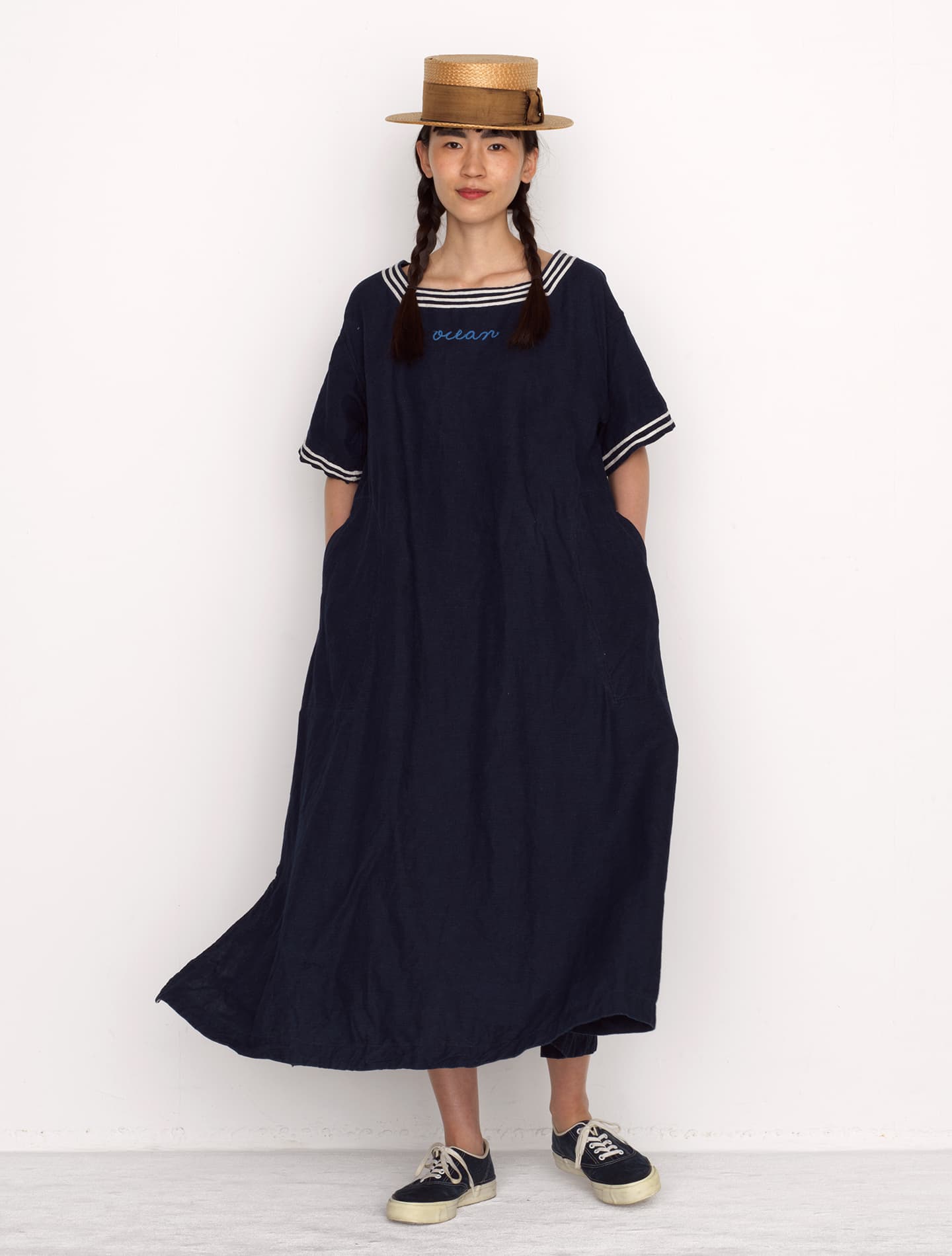 リネンのセーラードレス(インディゴ)