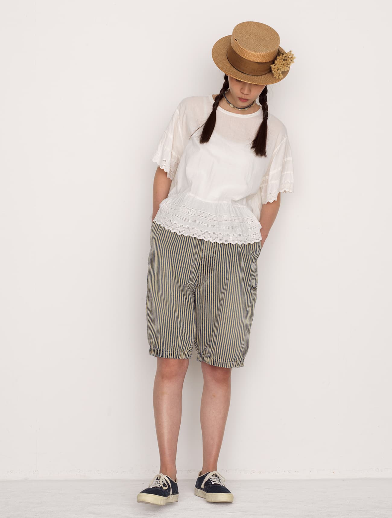 ハケ目カットワークのペチパンツ