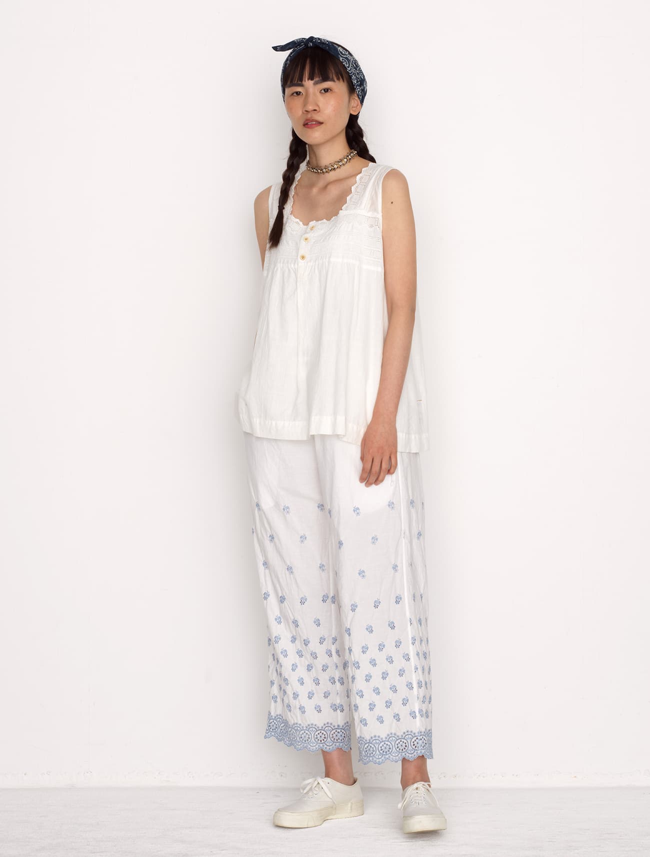 インドカディdeカットワークノースリーブトップ