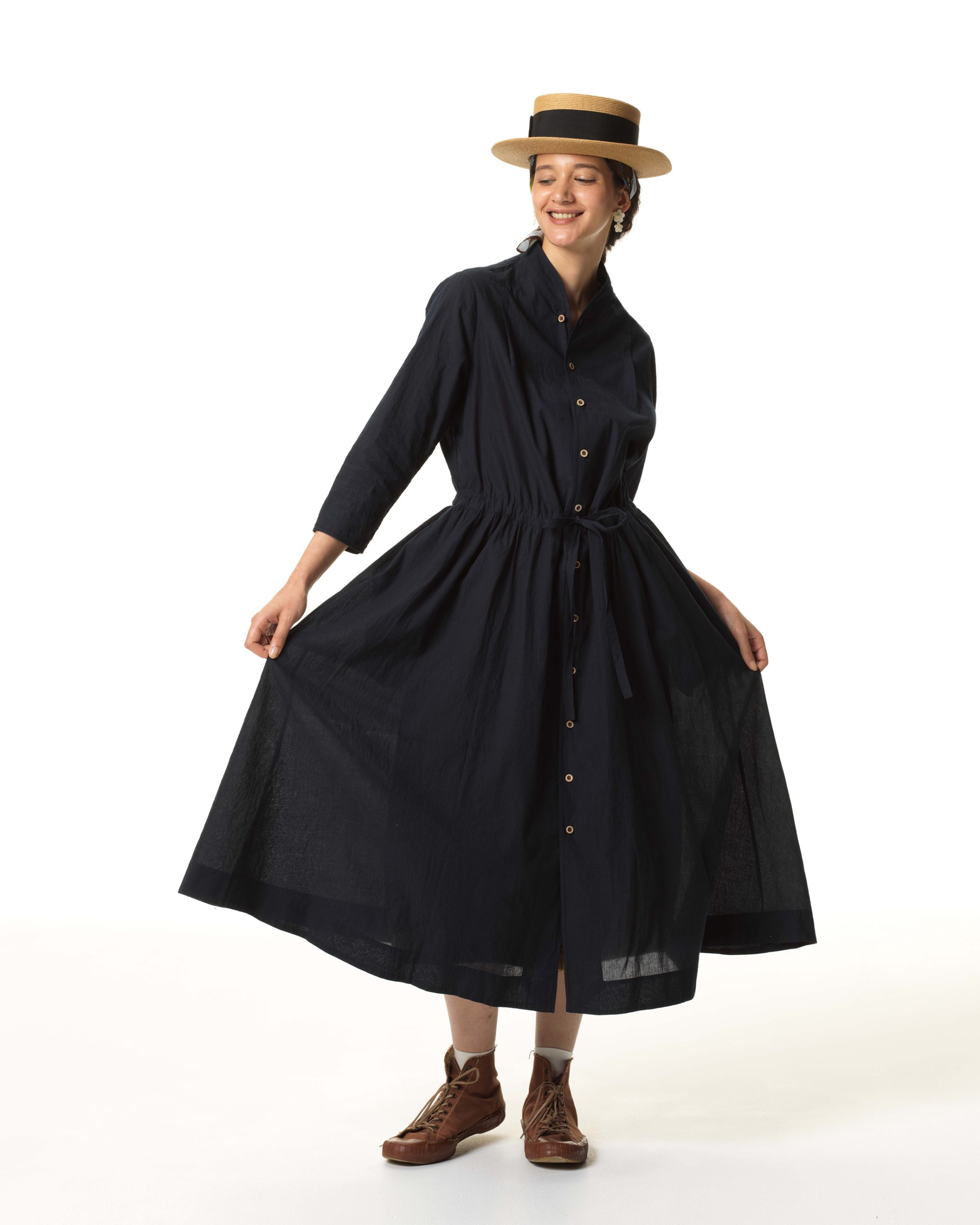 春風インドカディの四角ドレス(シャンブレー)