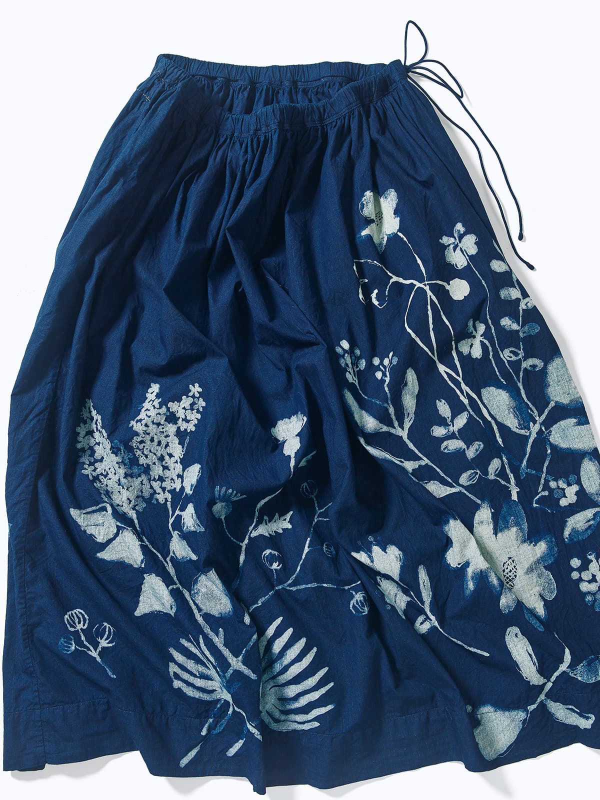 墨絵フラワープリントのイージーギャザースカート(インディゴ)