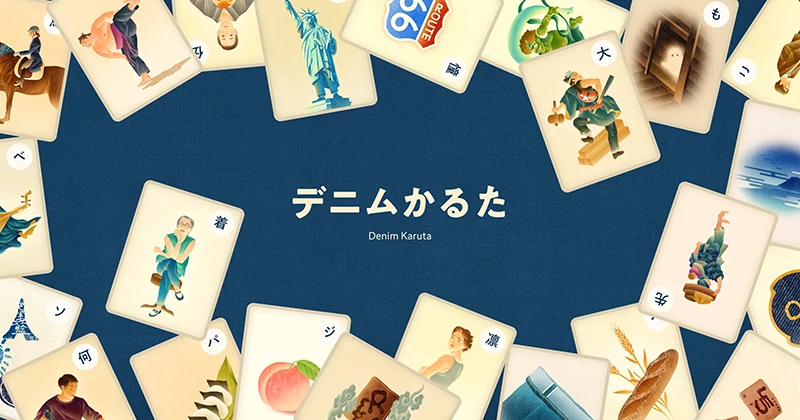 45Rのデニムのあれやこれやが、45枚のかるたになりました。かるた遊びはもちろんのこと、うんちくも楽しめます。