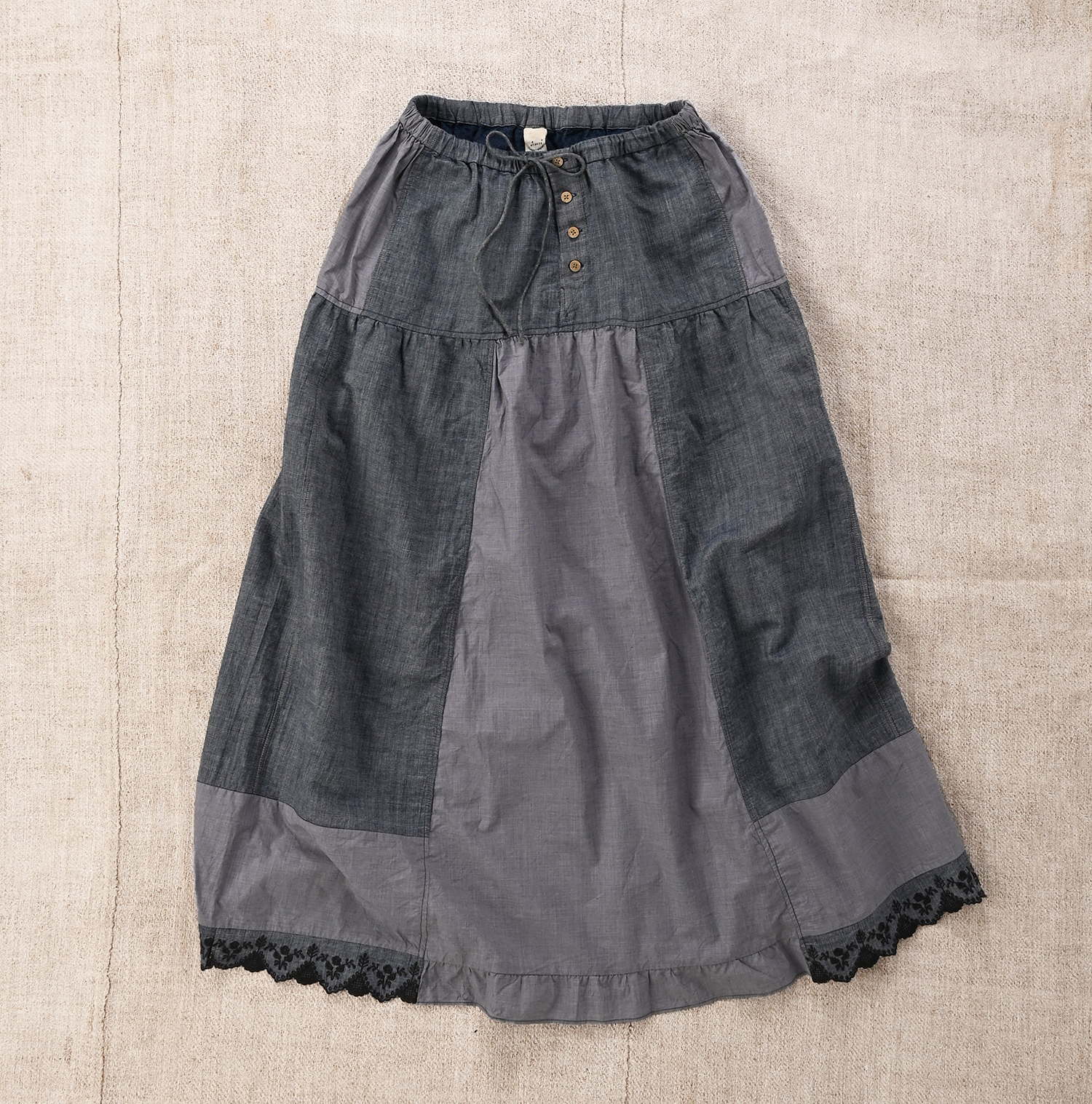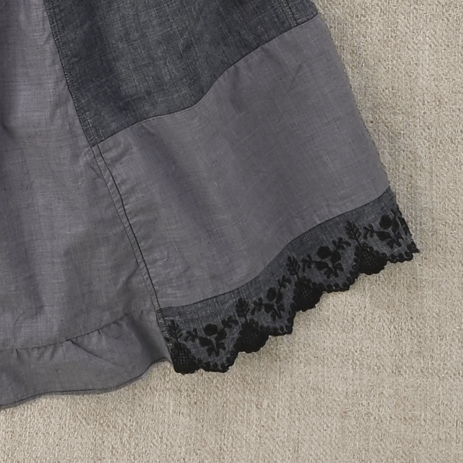 カットワークのパジャマパンツを、スカートに仕立て直し。