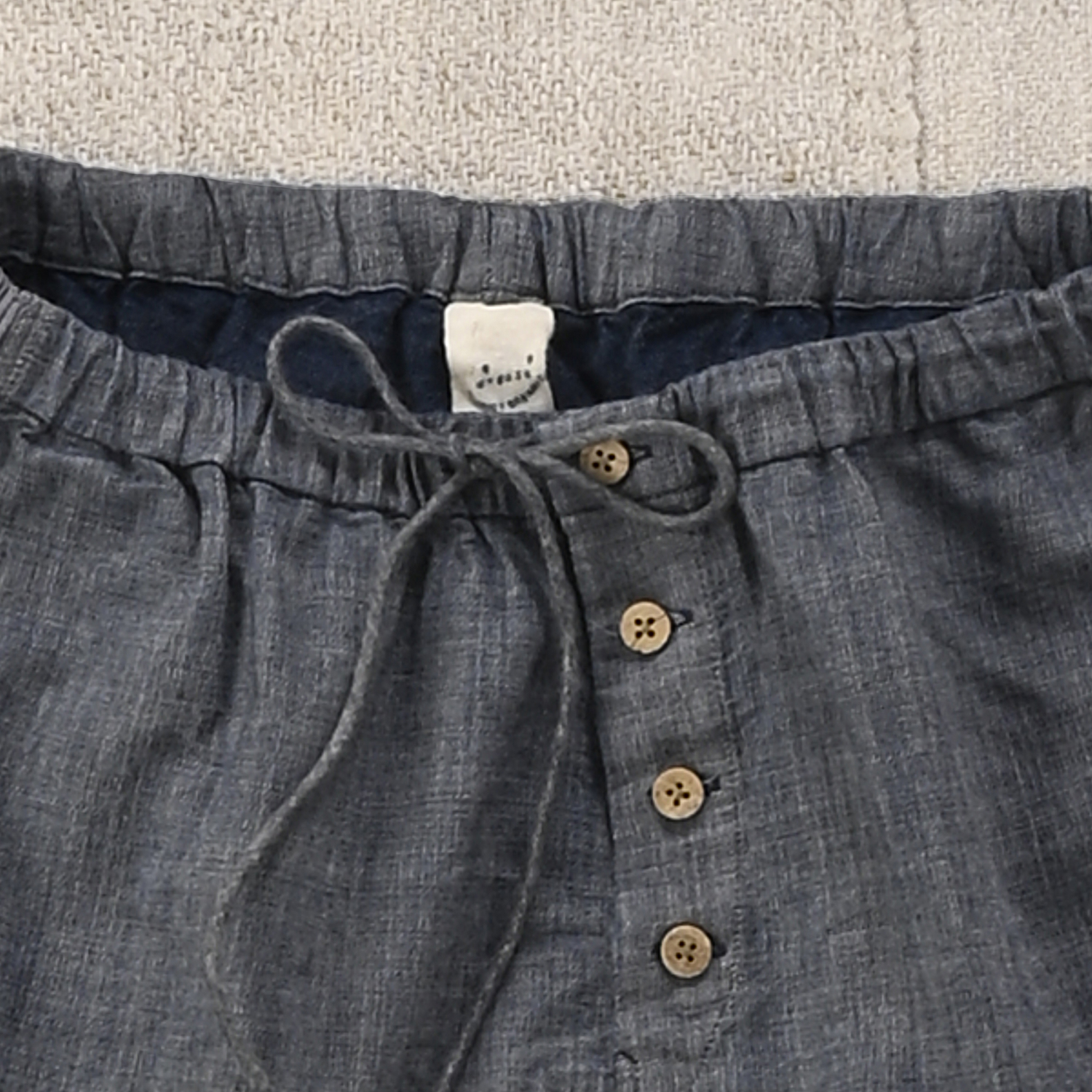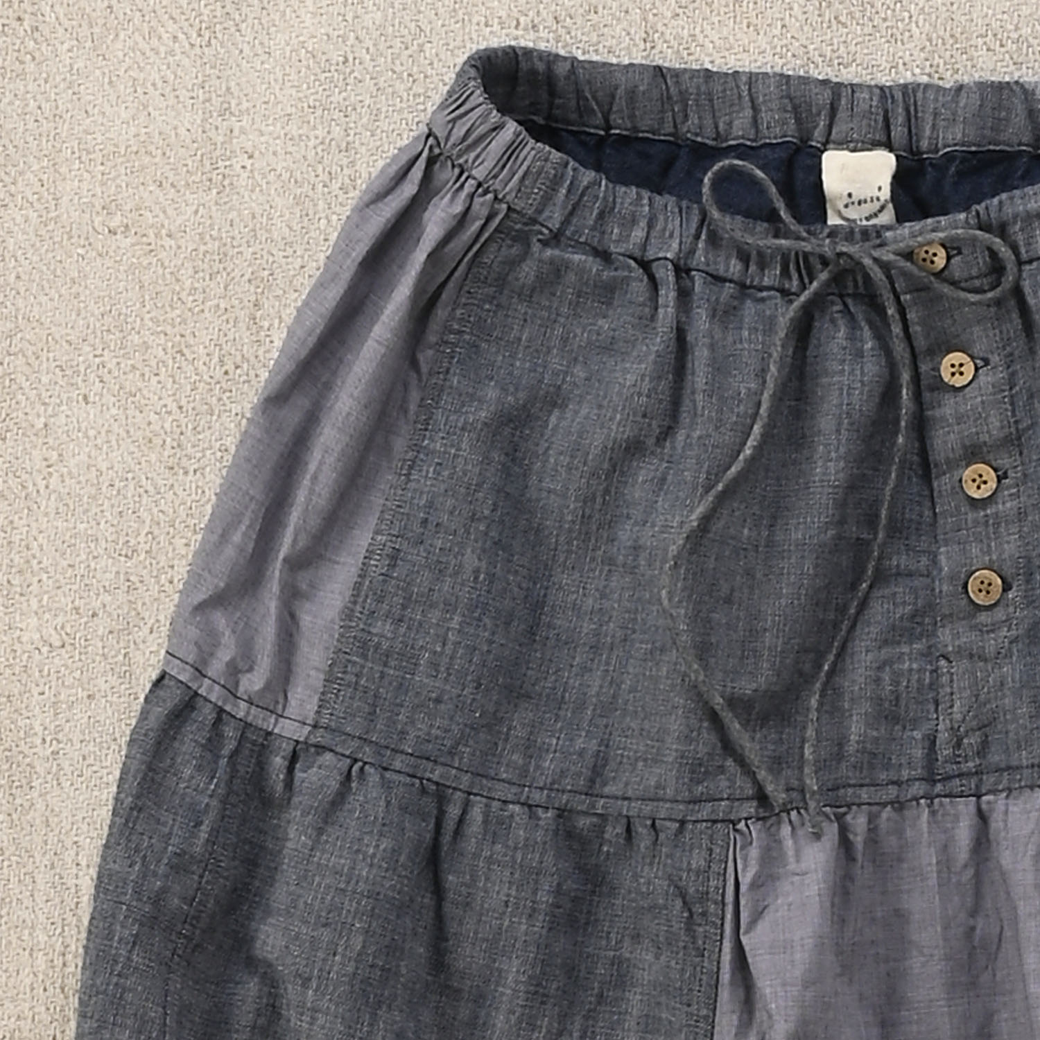 違う布をはぎ合わせても雰囲気がなじむのは、同じ45Rの素材を使っているからこそ。