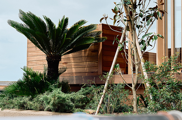 さらに海側にはヨーロッパ原産のオリーブ、そして南国を感じさせるソテツまで植えられ、色とりどりの多彩な植物が葉山店を飾り付けています。