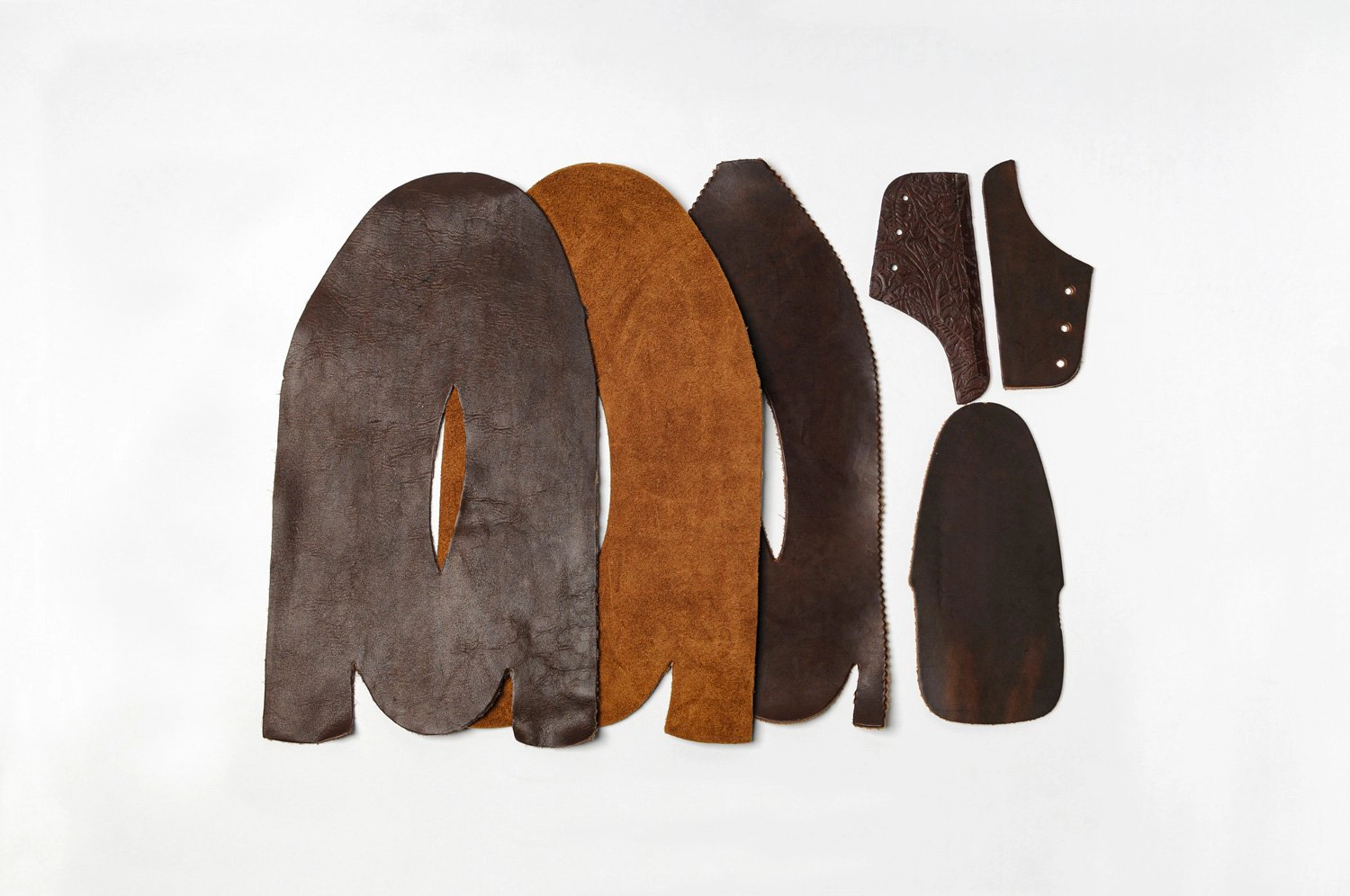 YUKETENでは、世界中から集めた貴重かつ長持ちする最高品質の素材のみを選んで各部位に使用しています。たとえば、1900年から続くアメリカ・ホーウィン社でしかなめすことのできない丈夫でしなやかなオイルドレザー、数々のメゾンブランドからも以来のくるイタリア・トスカーナにて1970年代より続くオペラ社の上質でシルキーなフルグレインレザー、メキシコで100年以上も続く原始的な製法でなめされたベジタブルタンニンレザーなどです。