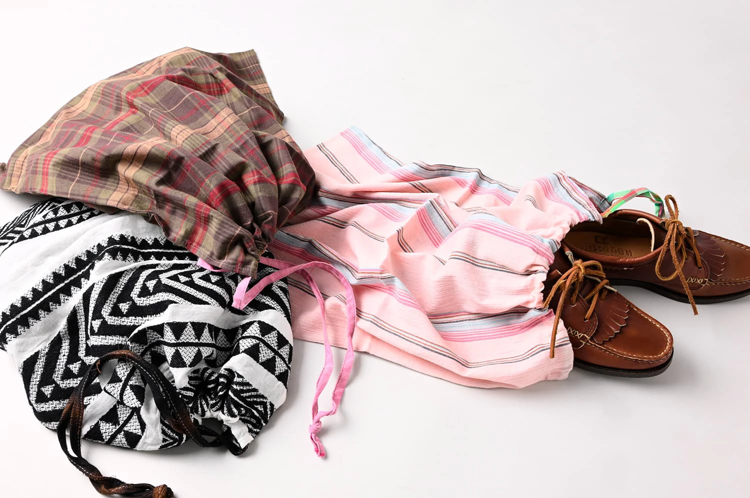 伝統的な工法のモカシン、世界中から厳選された最高品質の革、独創的で機能的なオリジナルソール、そして伝統を受け継ぐ職人たち、これらがクロスオーバーしてYUKETENの靴が生まれています。そして、日本人ならではの感性も欠かせないエッセンスのひとつ。マニアックできめ細かい靴の仕様、MOTTAINAIの精神から生まれた端切れ布を使ったシューズバッグなど、細部に至るまで哲学が宿っています。