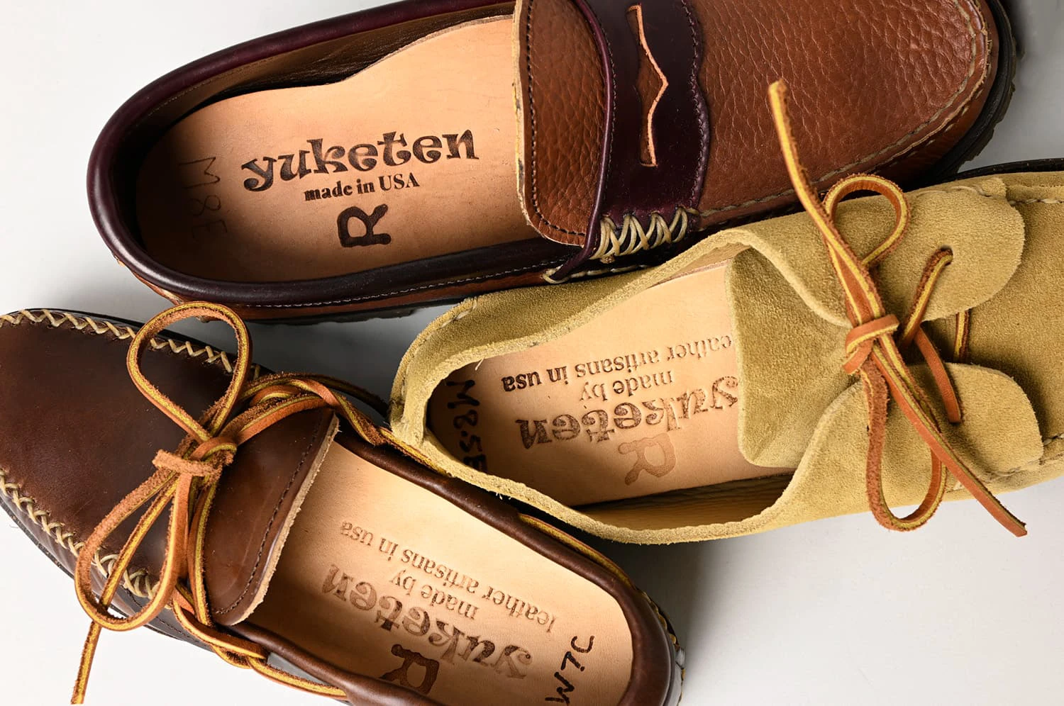 45Rが揃えるYUKETENの靴は、アメリカ先住民族の伝統的なモカシン製法の聖地であるアメリカ・メイン州、そしてイタリアのシビリーニ山脈に位置する歴史的な工房にて熟練された手縫い靴職人によりトゥルーモカシン製法で丹念に作られています。