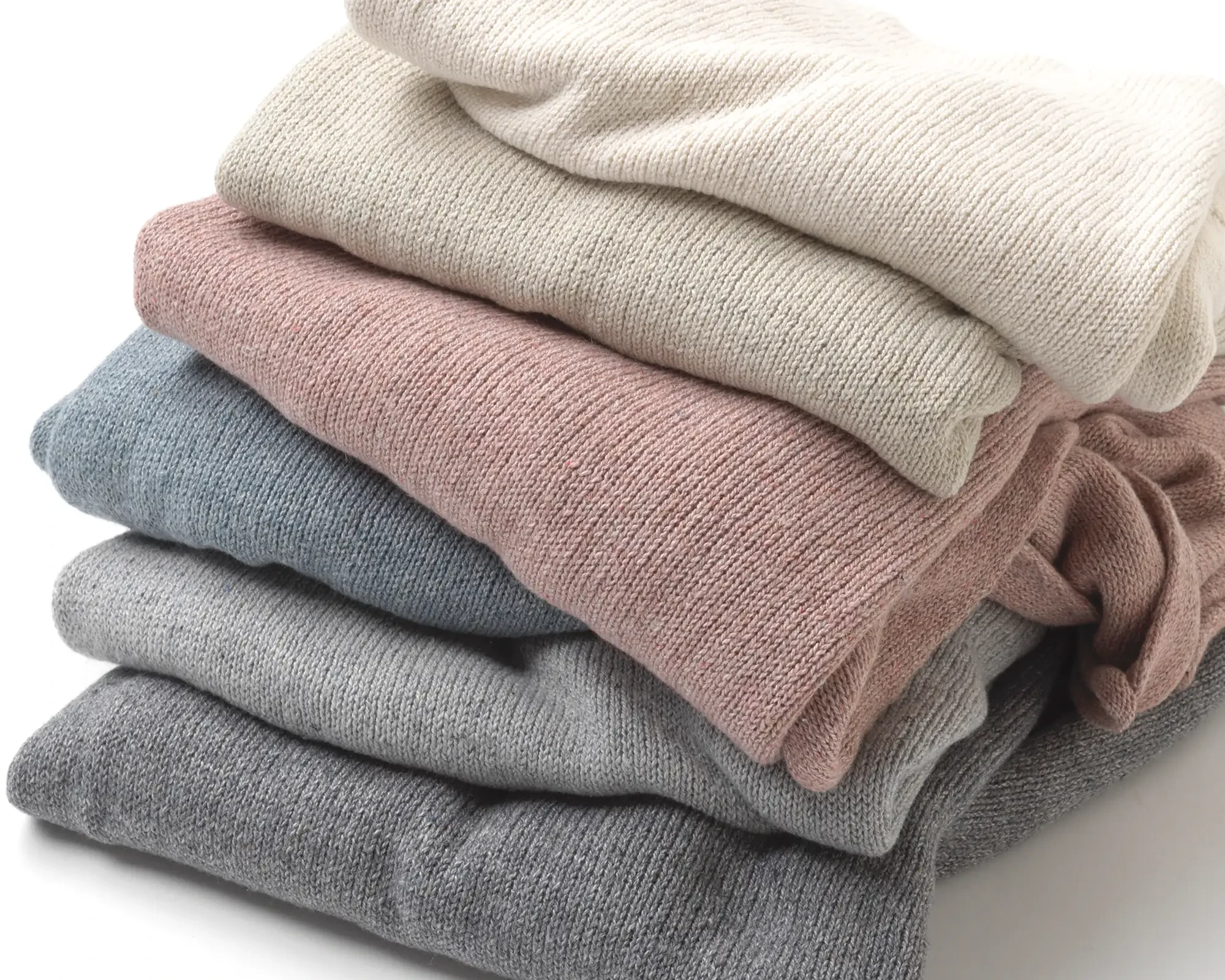 役割を終えた服たちを反毛(はんもう)して綿(わた)に戻し、もう一度糸を紡いで編み立てました。