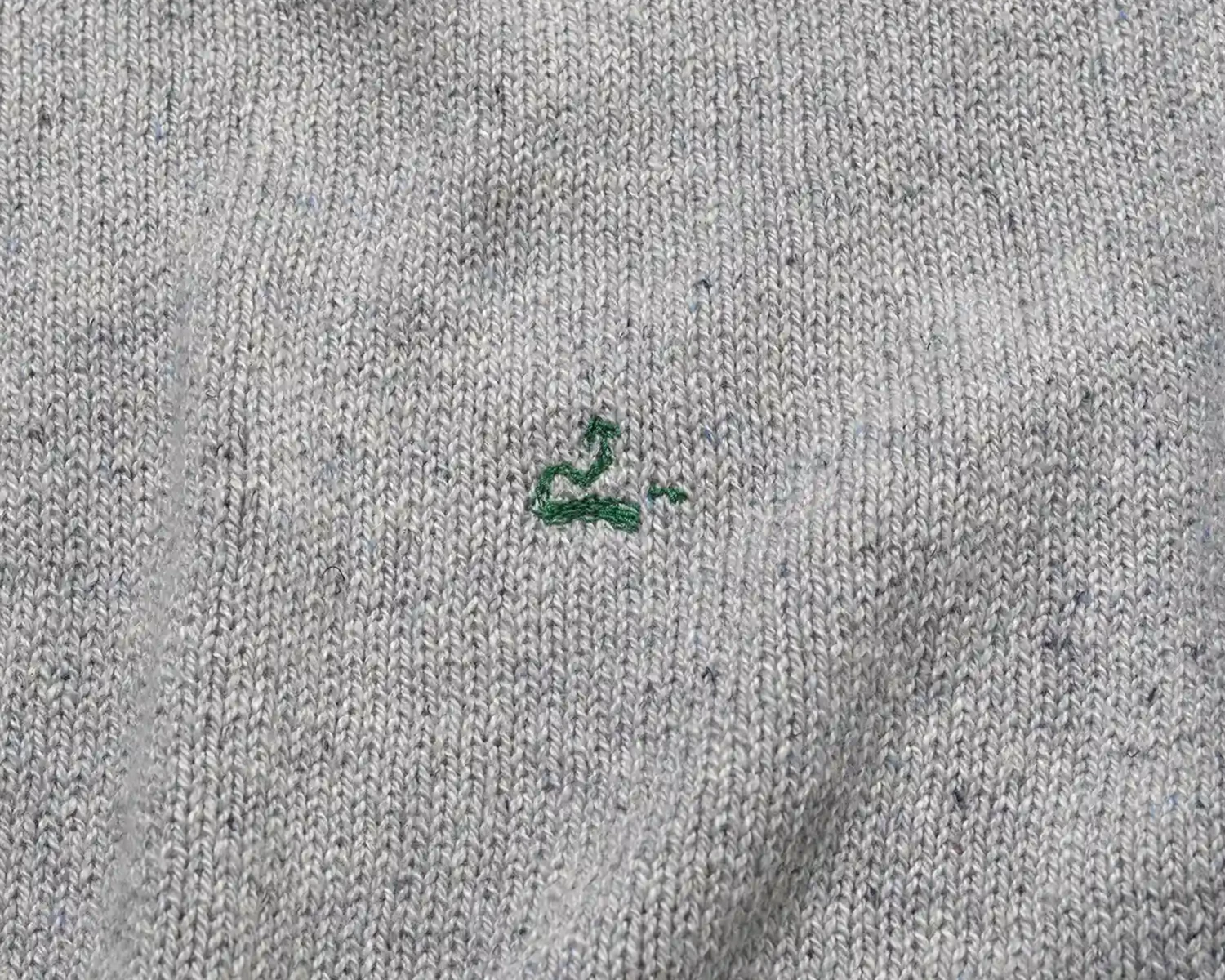 糸のムラやインディゴの色落ちはご愛嬌。それは元の服が持っていた個性です。どこか懐かしい風合いの反毛セーターには、「リサイクルR」の刺繍を施しました。